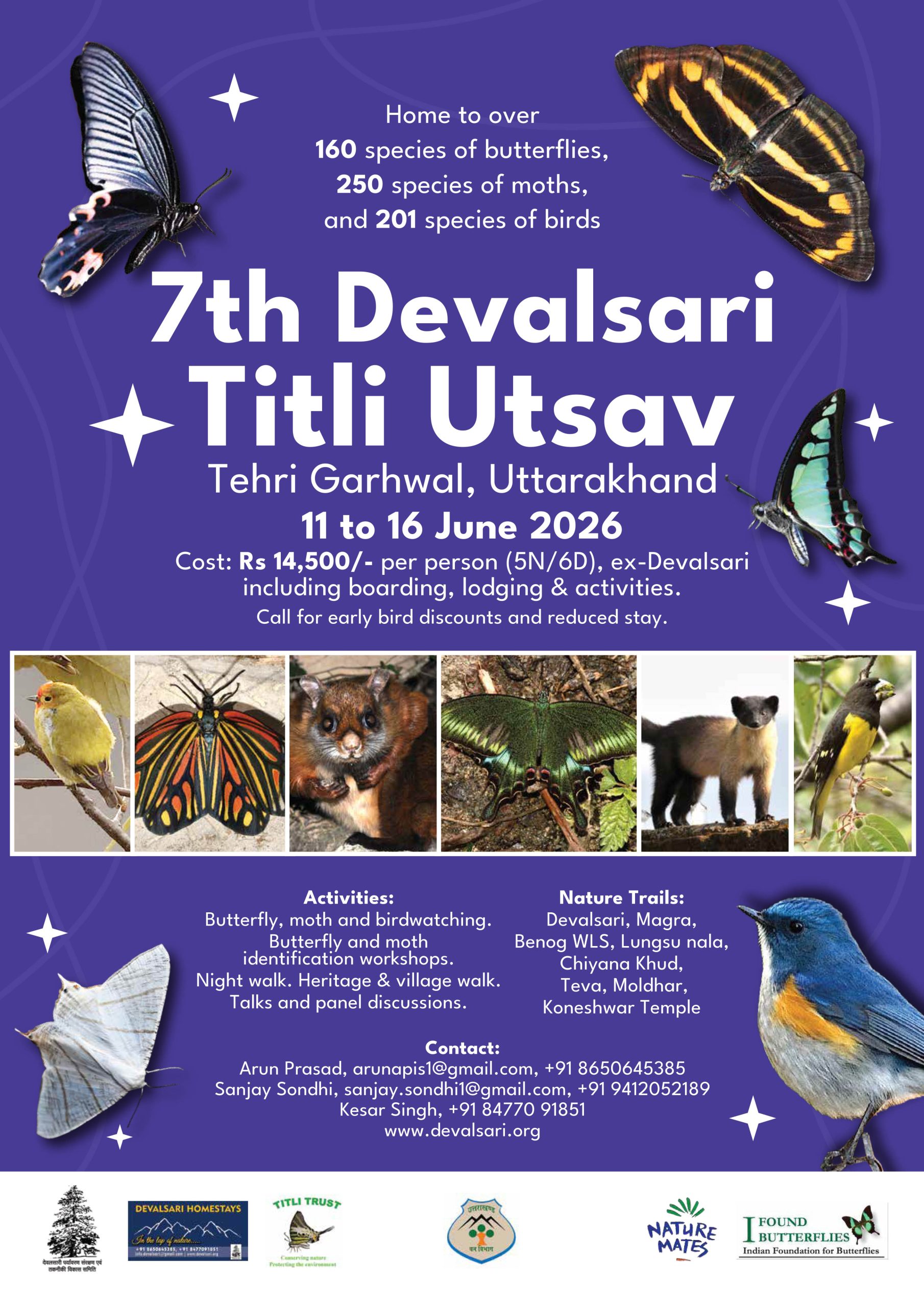 Titli Trust has supported numerous conservation and livelihood programs such Devalsari, Pawalgarh, Munsiari (supporting Himal Prakriti), Jhilmil Jheel, Mussoorie-Dhanaulti (collaboration with CEDAR) in Uttarakhand, Garo Hills in Meghalaya (collaboration with Samraskhan), Eaglenest WLS and Pakke Tiger Reserve (with EcoSystems-India) and Tale WLS in Arunachal Pradesh.